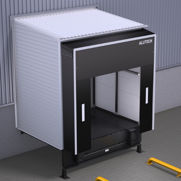 Главная / Перегрузочное оборудование / Перегрузочные тамбуры / Перегрузочный тамбур Alutech DH (150 градусов, заполнение профлист)
